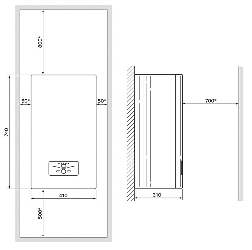 - patikimą veikimą užtikrina du saugos temperatūros ribotuvai (95° ir 100° C) ir apsaugos nuo užšalimo funkcija. Jei vandens slėgis yra nepakankamas, slėgio jutiklis katilą automatiškai išjungia. Automatinis, tolygus darbo valandų paskirstymas tarp atskirų šildymo elementų užtikrina ilgą jų tarnavimo laiką.